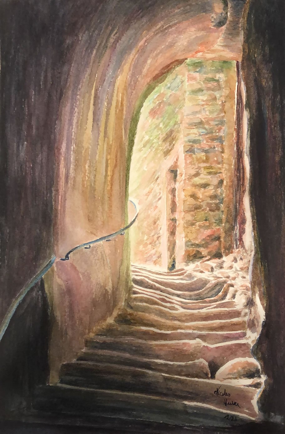 Dans l'antre du Fleckenstein Aquarelle, décembre 2023