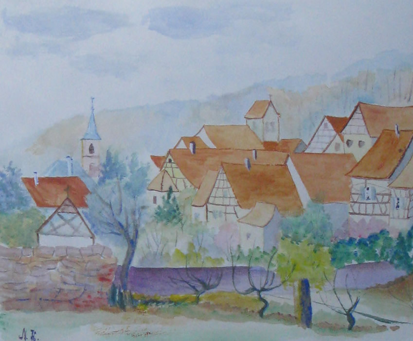 Maison natale des Kandel à Pfaffenhoffen Auqarelle, 1994