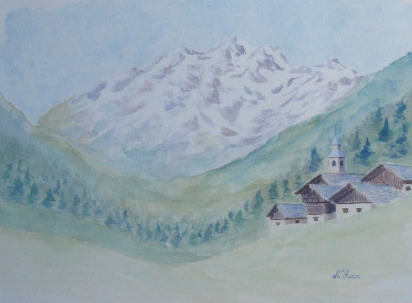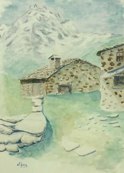 Fond de vallée de Maurienne Aquarelle, 27/27, 1995