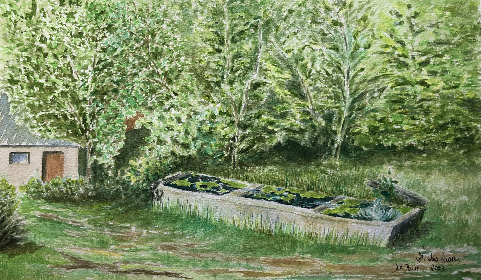 Au bassin de la Bise, à Fontcouverte Aquarelle, juillet 2023