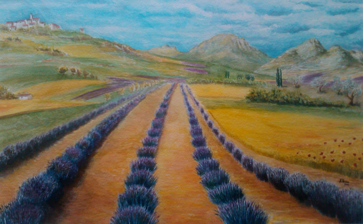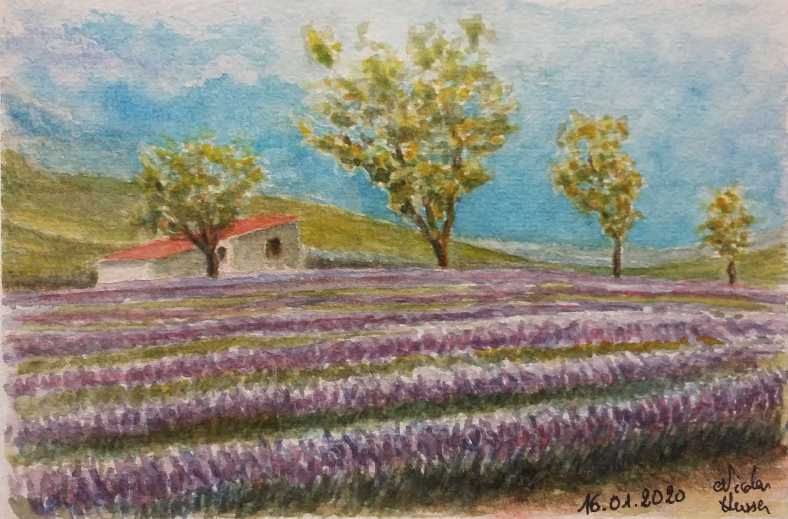 Champ de lavande en Provence Aquarelle, 51/36, 2014
