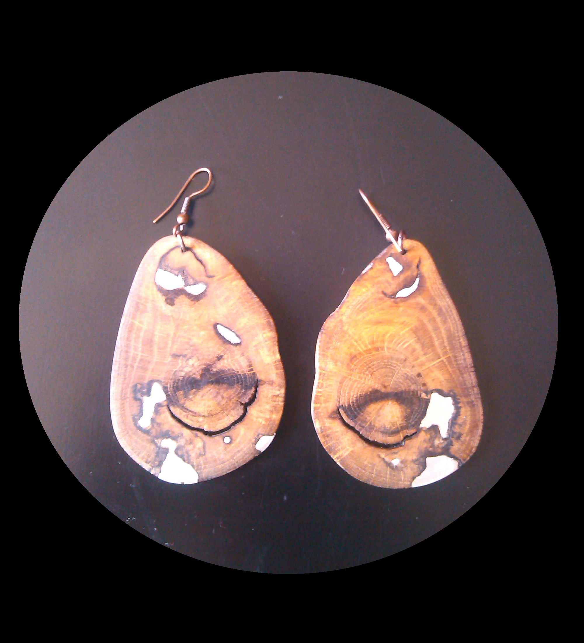 Boucles d'oreilles Boucles d'oreilles en noyer avec incrustation d'étain, 2012