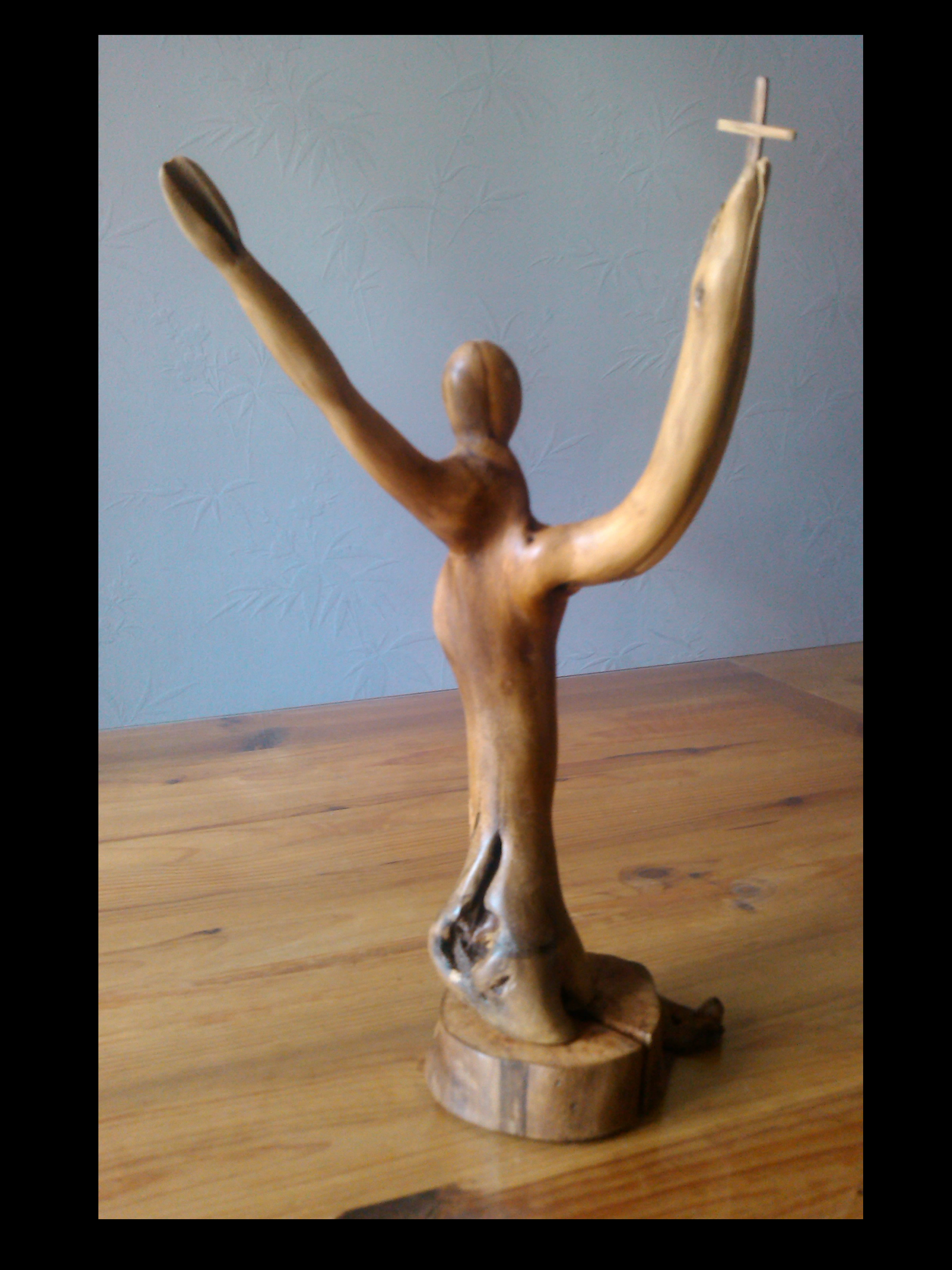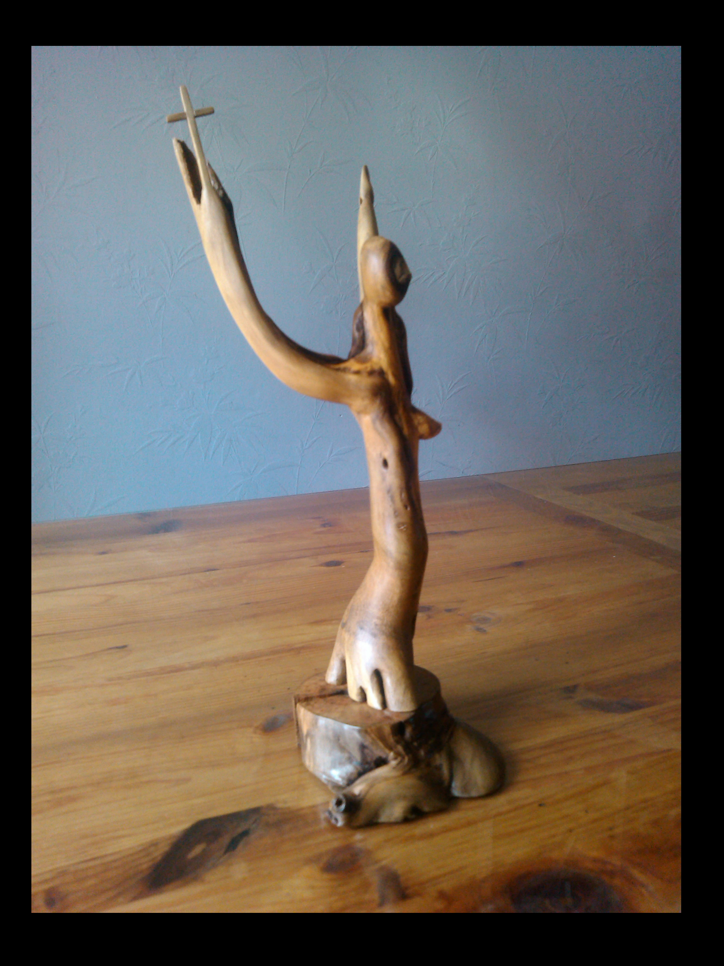 Statue en souche de rosier Statue en souche de rosier, vue de face, 2012