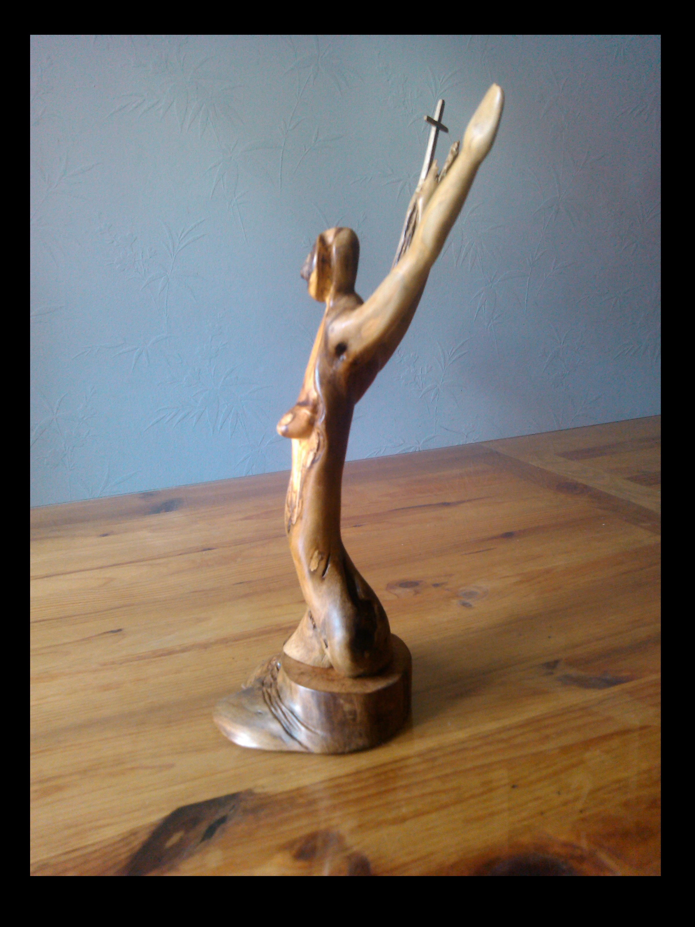 Statue en souche de rosier Statue en souche de rosier, vue sur la droite, 2012